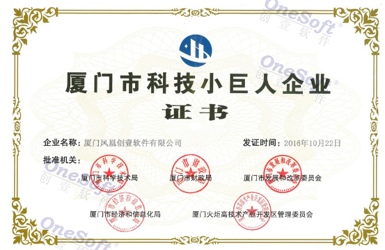 廈門市科技小巨人企業(yè)證書