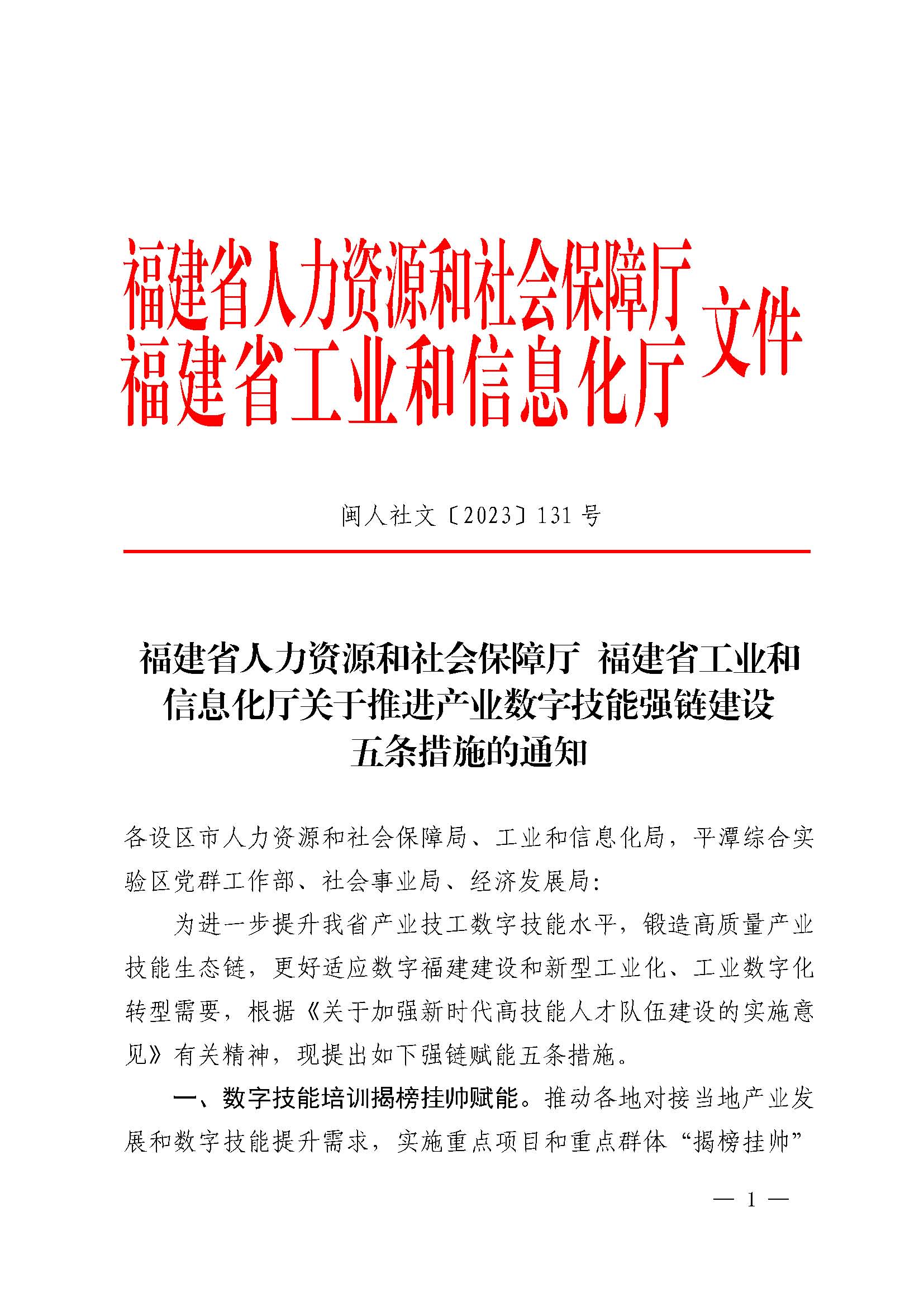 近日,福建省人力資源和社會保障廳、福建省工業(yè)和信息化廳發(fā)布《關(guān)于推進產(chǎn)業(yè)數(shù)字技能強鏈建設(shè)五條措施的通知》,進一步提升福建省產(chǎn)業(yè)技工數(shù)字技能水平,鍛造高質(zhì)量產(chǎn)業(yè)技能生態(tài)鏈,更好適應(yīng)數(shù)字福建建設(shè)和新型工業(yè)化、工業(yè)數(shù)字化轉(zhuǎn)型需要。