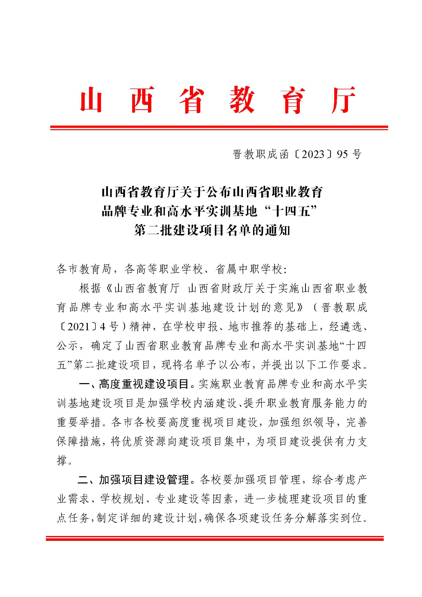 近日,山西省教育廳公布山西省職業(yè)教育品牌專業(yè)和高水平實訓基地“十四五”第二批建設(shè)項目名單的通知,高職學校38所,中職學校71所,10個自籌項目。