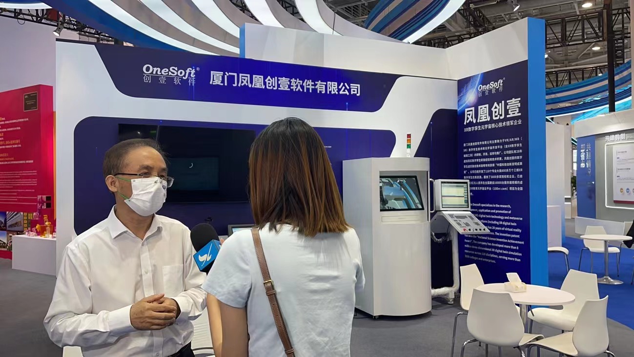 廈門鳳凰創(chuàng)壹總經理林慶平博士:我們本次參展的是元宇宙、虛擬現(xiàn)實、數(shù)字孿生、虛實融合的產品,希望能夠把完全國產自主產權,擁有所有源代碼的產品分享給所有金磚國家。