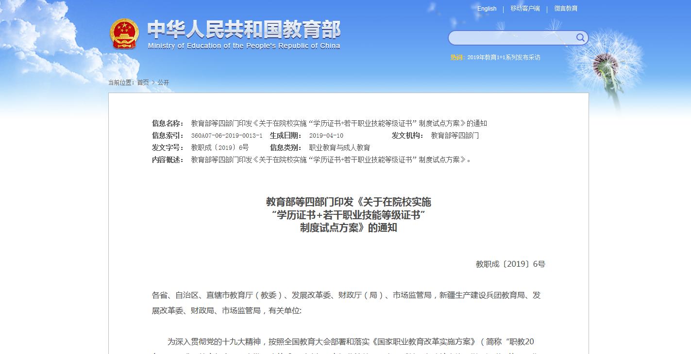 2019年,職業(yè)教育的‘一盤大棋’正在推進(jìn),改革逐步進(jìn)行。近日,教育部等四部門印發(fā)《關(guān)于在院校實(shí)施“學(xué)歷證書+若干職業(yè)技能等級(jí)證書”制度試點(diǎn)方案》的通知,對(duì)國務(wù)院印發(fā)的《國家職業(yè)教育改革實(shí)施方案》中提......