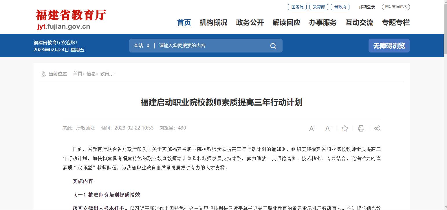 近日,福建啟動職業(yè)院校教師素質(zhì)提高三年行動計劃,提出加快推進(jìn)知識技能更新、提升教師“雙師”素質(zhì)、暢通教師校企雙向流動、打造職業(yè)教育領(lǐng)軍人才隊伍、創(chuàng)新職教教師培訓(xùn)模式等實施內(nèi)容。 ......