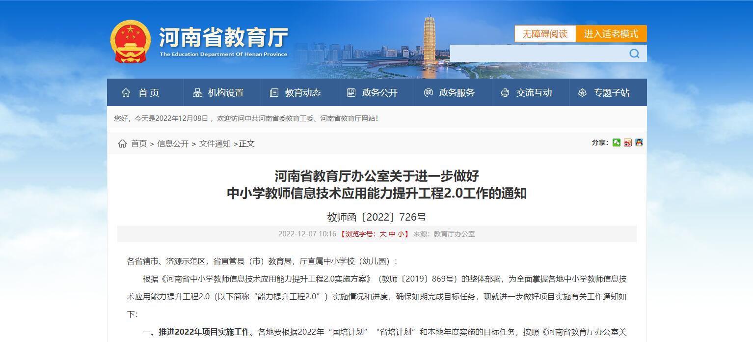 河南省教育廳辦公室關(guān)于進(jìn)一步做好 中小學(xué)教師信息技術(shù)應(yīng)用能力提升工程2.0工作的通知