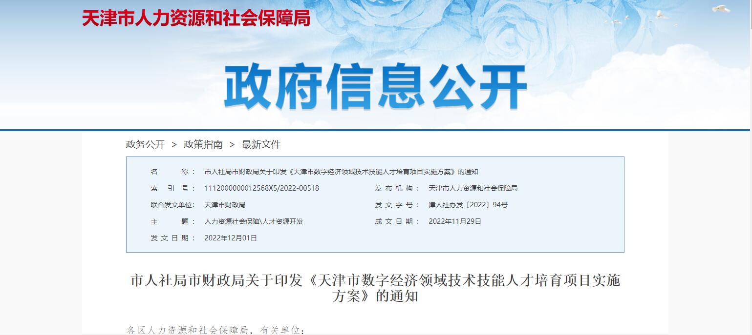 天津出臺數(shù)字人才培育落地政策 將在2030年末培育數(shù)字經(jīng)濟(jì)技術(shù)技能人才1萬人以上