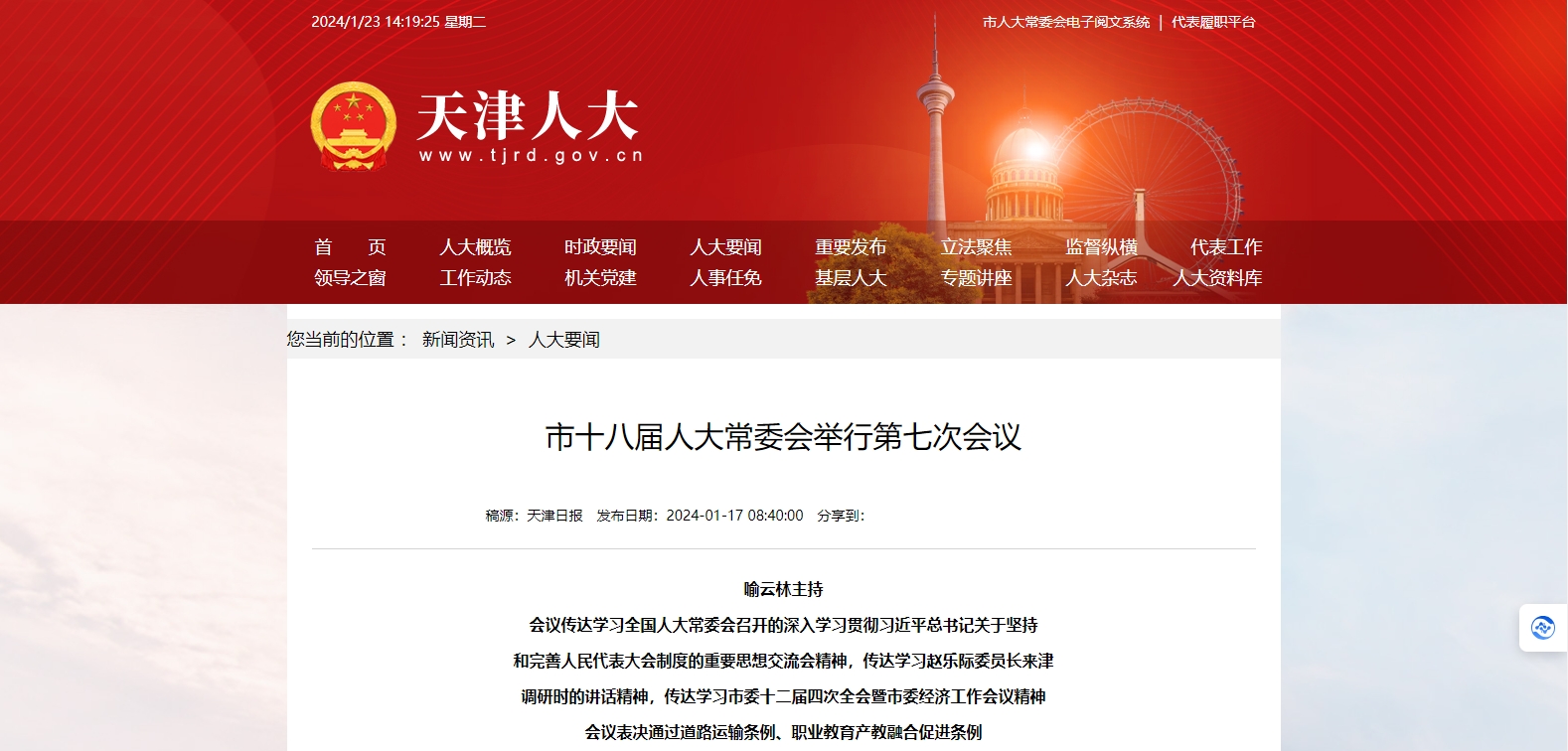 日前,天津市十八屆人大常委會第七次會議表決通過了《天津市職業(yè)教育產(chǎn)教融合促進條例》(下稱《條例》),這是全國首部有關(guān)職業(yè)教育產(chǎn)教融合的地方性法規(guī),自2024年3月1日起施行。《條例》的制定和施行,對于......